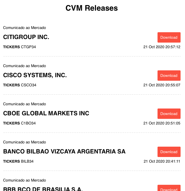 Os documentos da CVM assim que publicados direto no seu e-mail.